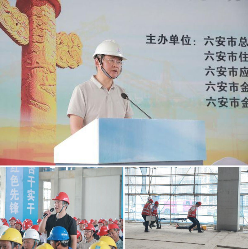 6月19日上午,六安市长三角一体化物流园项目举办六安市安全生产月、住建系统“安康杯”竞赛活动启动仪式暨劳动竞赛总结表彰、现场质量安全观摩交流会。六安城投公司党委副书记、总经理洪晓东,市应急局应急指挥中心主任高兴红,金安区住建局党组书记、局长赵玉明,党组成员、副局长茆震,金安区应急局副局长章成庆,金安经济开发区建设局局长赵海峰,项目参建单位负责人及金安区内在建项目各建设单位代表、工友代表等参加。