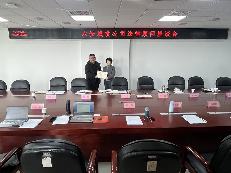 为深化公司法治建设,强化法律顾问管理,2月26日,市城投公司召开法律顾问座谈会,公司党委书记、董事长江洋,党委委员、副总经理宗超,公司审计法务部、财务融资部相关同志参加会议。