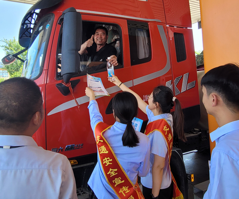 结合“安全生产月”主题,收费站工作人员向司乘人员发放《夏季行车安全指南》等宣传单页,耐心讲解高温天气车辆保养、疲劳驾驶危害、消防应急处置等安全知识,并提醒司乘注意检查轮胎气压、随车灭火器等细节,增强安全出行意识。