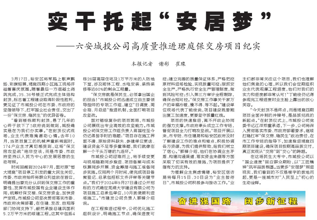 实干托起“安居梦”——六安城投公司高质量推进珺庭保交房项目纪实