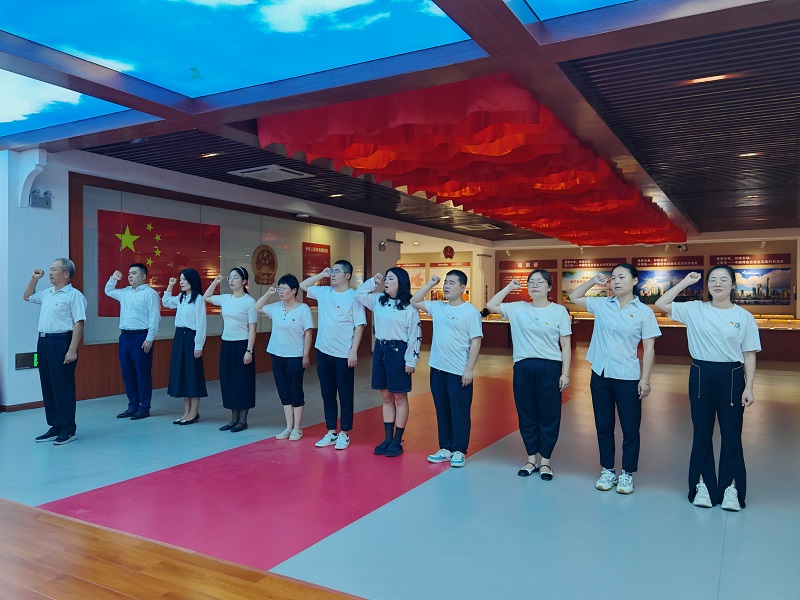 馆内一幅幅泛黄的老照片、一件件令人震撼的实物、一篇篇翔实的历史记载,在讲解员的细致讲解中,青年干部职工们的心灵深受洗礼,近距离感受到了革命先烈为了民族的解放,面对强敌不畏艰险、不怕牺牲、英勇不屈的革命精神。最后,全体党员党旗下,全体党员重温入党誓词