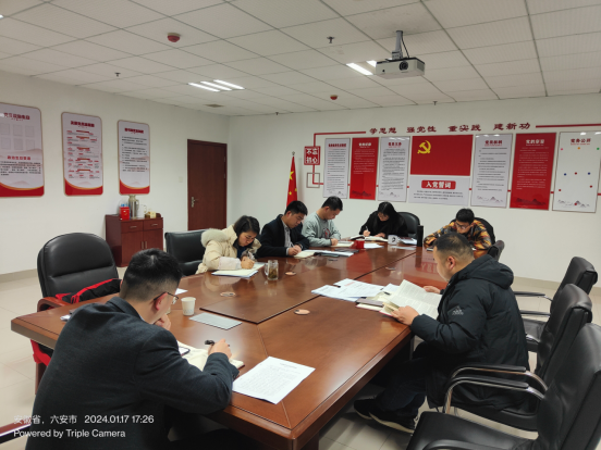 1月17日,市水投公司党支部开展主题教育专题组织生活会会前集中学习,支部全体党员参加。会议重点学习了习近平总书记在中共中央政治局专题民主生活会上的重要讲话精神以及《中国共产党章程》《关于新形势下党内政治生活若干准则》《中国共产党党支部工作条例(试行)》《中国共产党党员教育管理工作条例》等内容,并集中观看了部分主题教育公开课。党员还围绕“三问”开展了交流研讨。