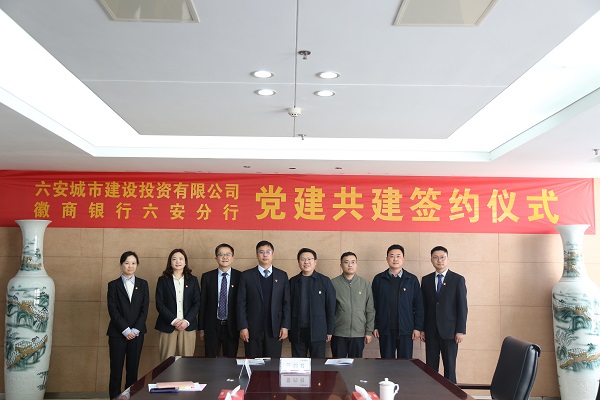 为充分发挥党建引领保障作用,不断深化党建工作与经营管理融合发展,3月28日下午,华体会体育(中国)hth官方网站与徽商银行六安分行举行党建共建签约仪式。六安城投公司党委书记、董事长郑国珍;徽行六安分行党委书记、行长丁勇,分行党委副书记、副行长季星云,党委委员、行长助理汪春梅出席签约仪式。双方相关职能部门负责人参加签约仪式。
